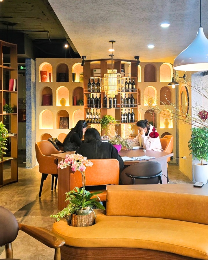 Những khu vực ngồi riêng tư được sắp đặt khéo léo, để mỗi người có thể tìm cho mình một góc nhỏ, mở laptop, đọc vài trang sách, hay đơn giản là ngồi yên cùng tách cà phê.