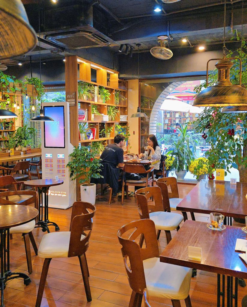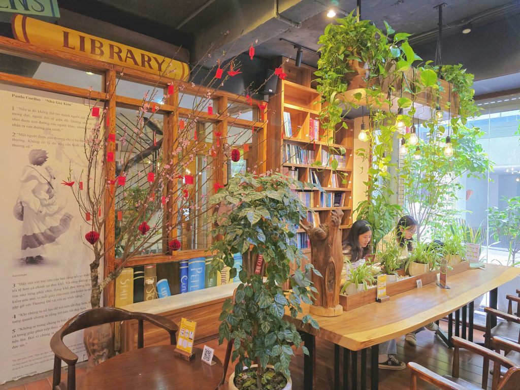Không gian rộng rãi, thoáng đãng, mang đến những góc ngồi riêng tư với ánh đèn vàng dịu và hàng nghìn cuốn sách thuộc nhiều thể loại, giúp bạn vừa trò chuyện vừa thư giãn đầu năm.