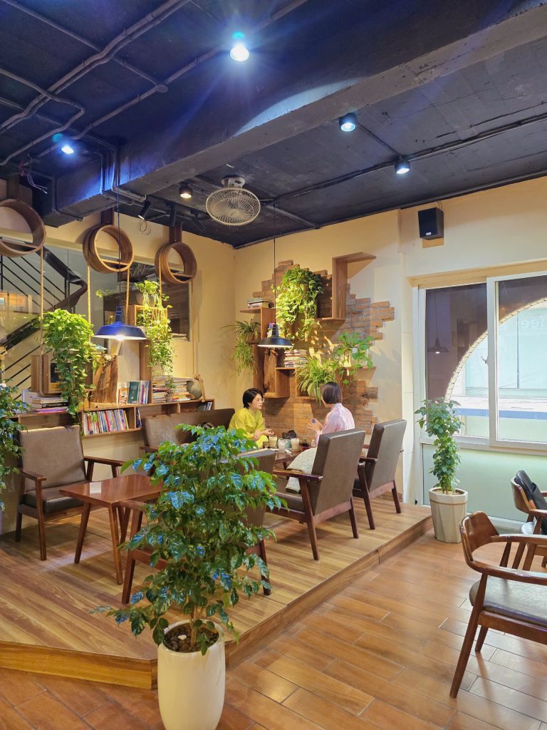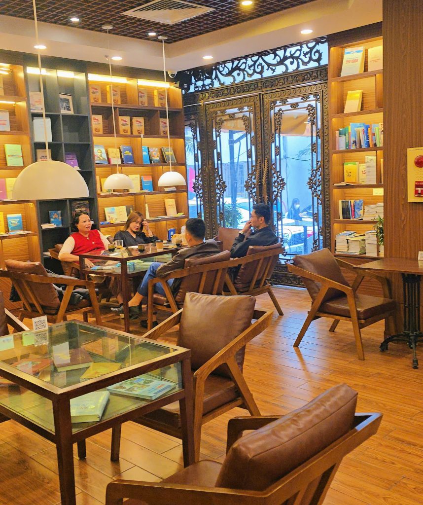Tầng 1 thoáng đãng, thuận tiện cho những cuộc hẹn ngắn; tầng 2 yên tĩnh hơn, bao quanh bởi kệ sách và ánh đèn vàng, tạo cảm giác riêng tư cho những cuộc trao đổi dài hơi. Tầng 3 sang trọng, thích hợp cho những cuộc gặp gỡ đối tác.