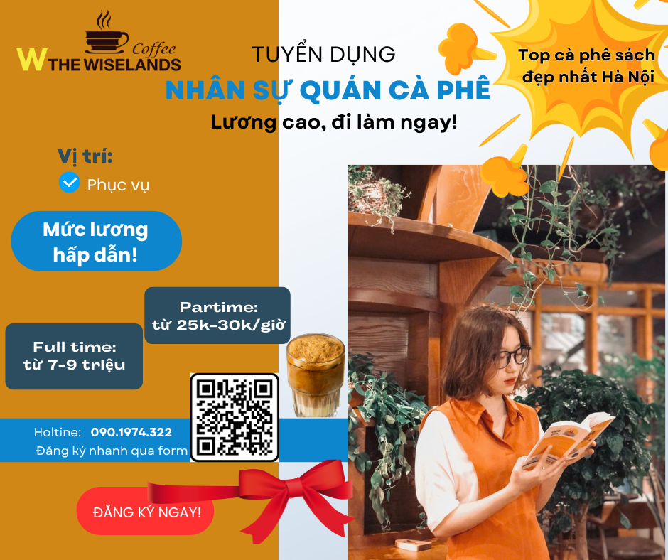 The Wiselands Coffee hiện tuyển dụng nhân viên phục vụ làm việc tại mô hình cà phê sách độc đáo ngay trung tâm quận Hoàn Kiếm.