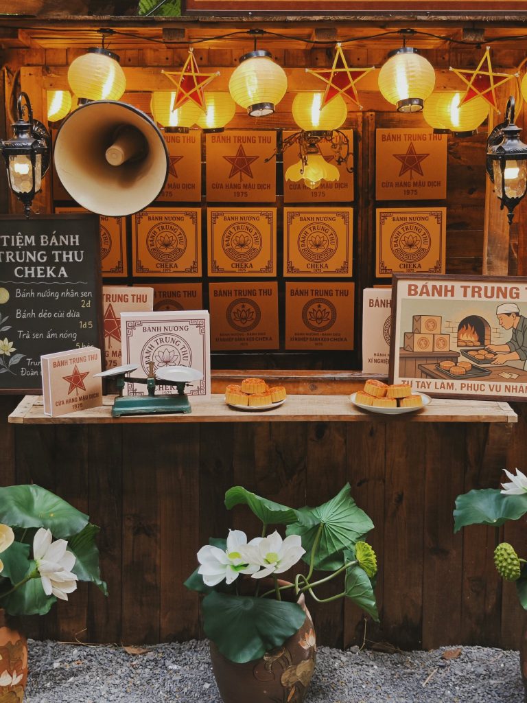 Cheka Cafe mang phong cách retro hoài cổ, đặc biệt ấn tượng trong mùa Trung Thu với concept phiên chợ xưa.