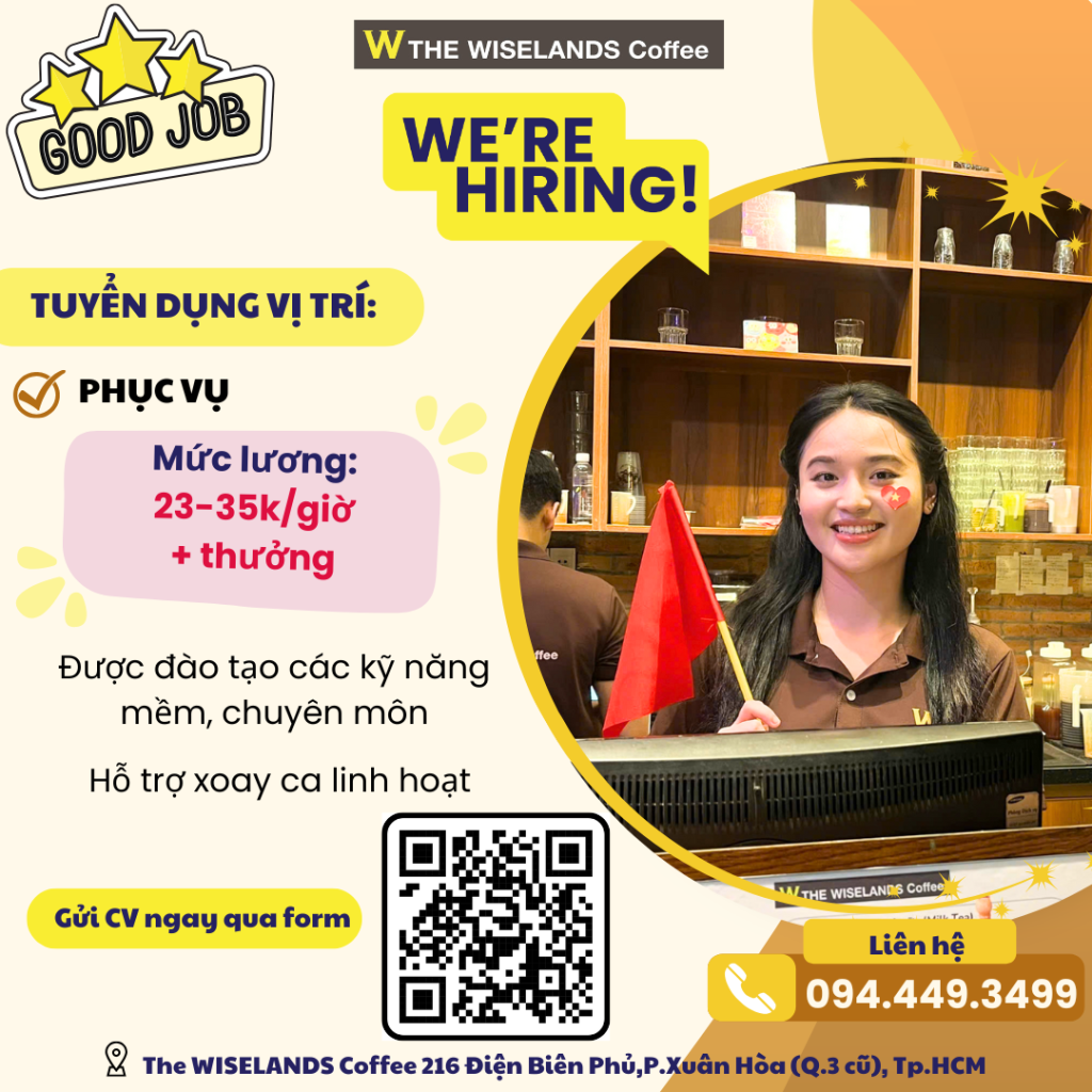 Làm việc tại quán cà phê trung tâm Q.3, môi trường chuyên nghiệp – minh bạch – nhiều cơ hội thăng tiến.